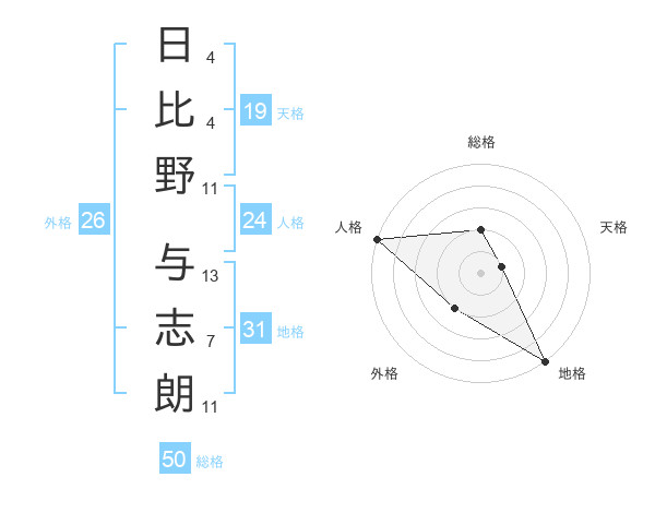 日比野 与志朗さんを姓名の画数から五運を鑑定