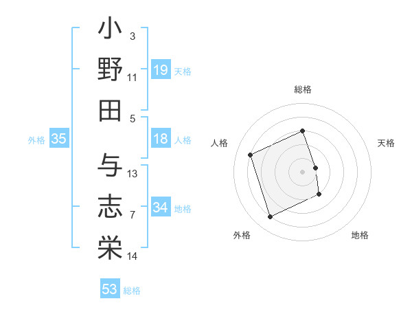 小野田 与志栄さんを姓名の画数から五運を鑑定