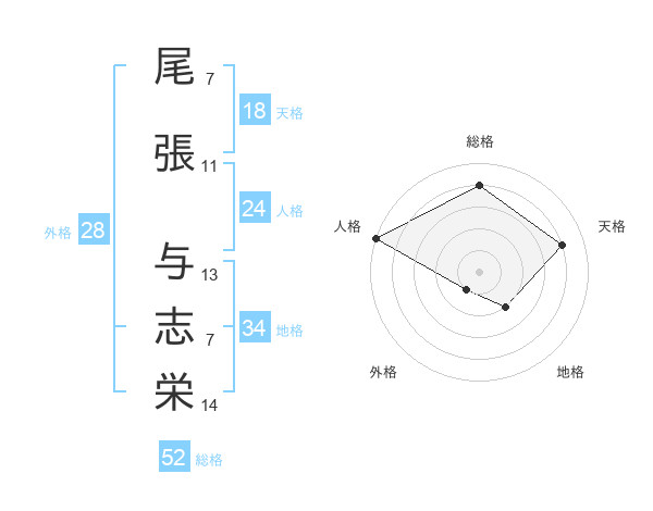 尾張 与志栄さんの総格は52画の4点