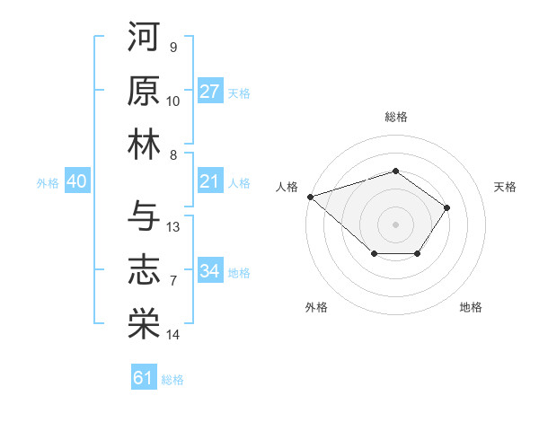 河原林 与志栄さんを姓名の画数から五運を鑑定