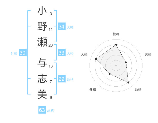 小野瀬 与志美さんの総格は63画の4点