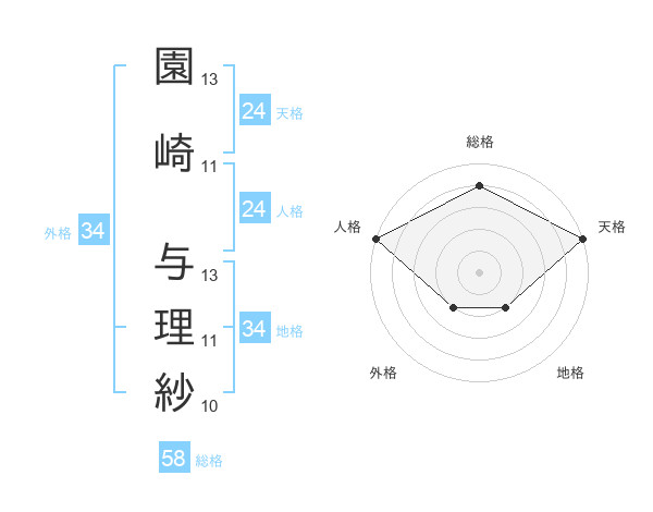 園崎 与理紗さんの総格は58画の4点!