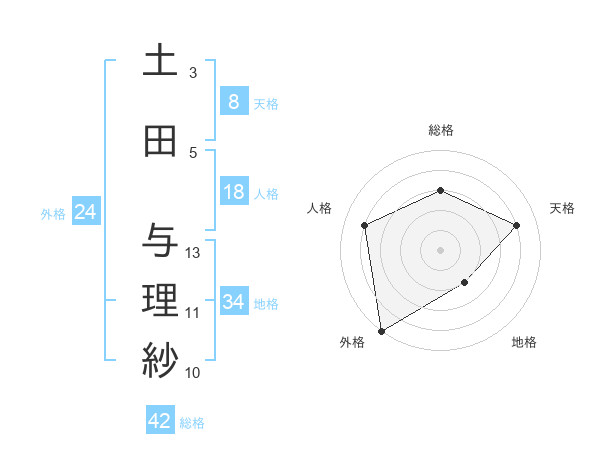 土田 与理紗さんの総格は42画の3点
