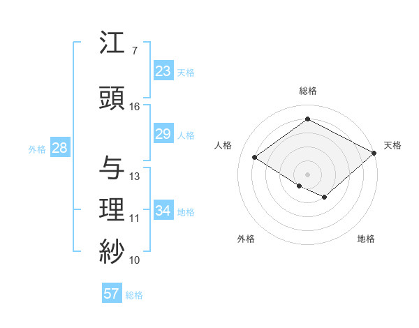 江頭 与理紗さんを姓名の画数から五運を鑑定