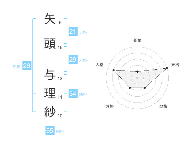 矢頭 与理紗さんを姓名の画数から五運を鑑定