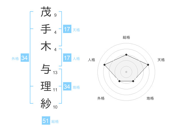 茂手木 与理紗さんを姓名の画数から五運を鑑定