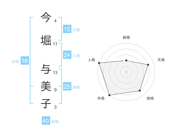 今堀 与美子さんを姓名の画数から五運を鑑定