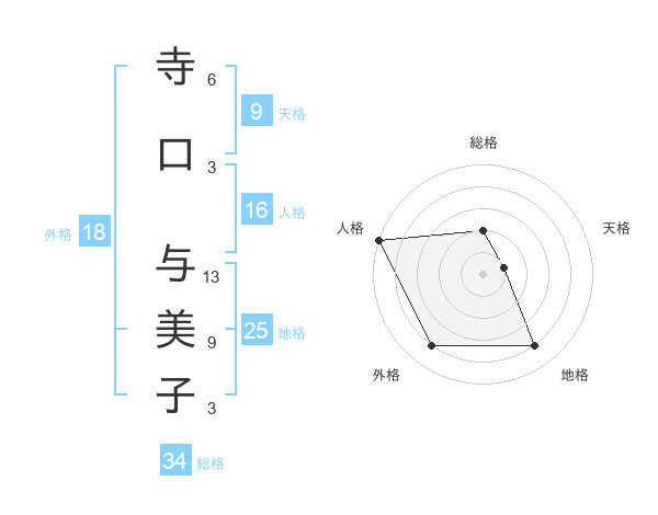 寺口 与美子さんの総格は34画の2点!