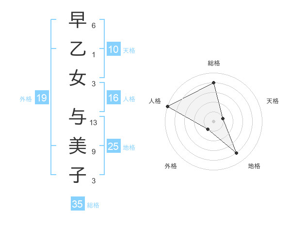 早乙女 与美子さんを姓名の画数から五運を鑑定