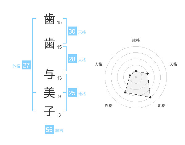歯歯 与美子さんを姓名の画数から五運を鑑定