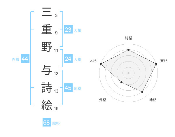 三重野 与詩絵さんを姓名の画数から五運を鑑定