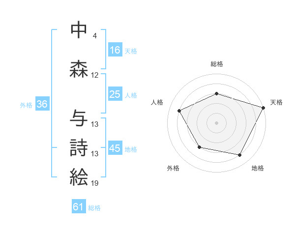 中森 与詩絵さんの天格は16画の5点!
