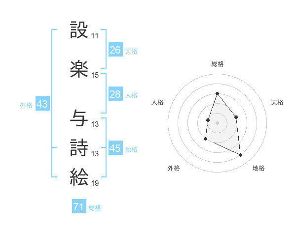 設楽 与詩絵さんの総格は71画の3点!
