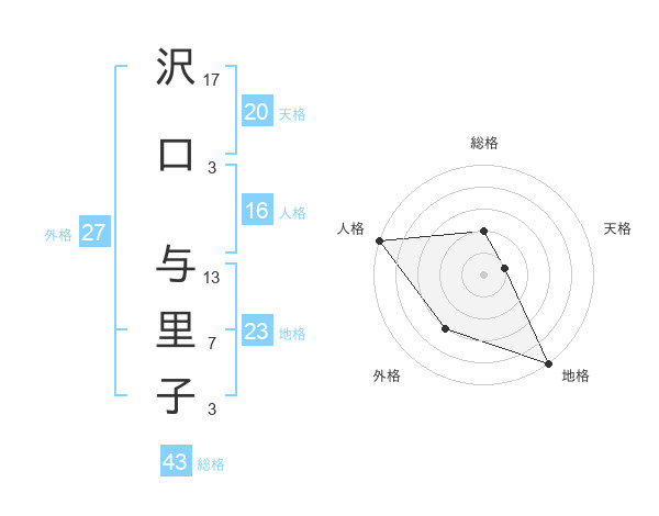 沢口 与里子さんを姓名の画数から五運を鑑定
