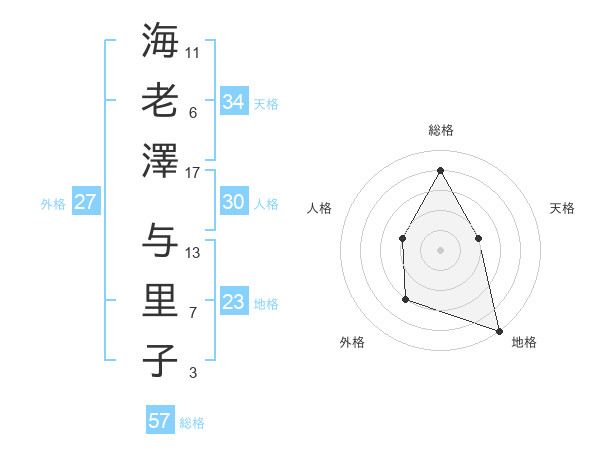 海老澤 与里子さんの総格は57画の4点!
