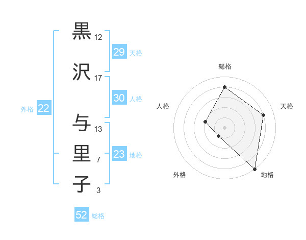 黒沢 与里子さんを姓名の画数から五運を鑑定