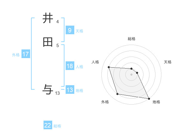 井田 与さんの地格は13画の5点!