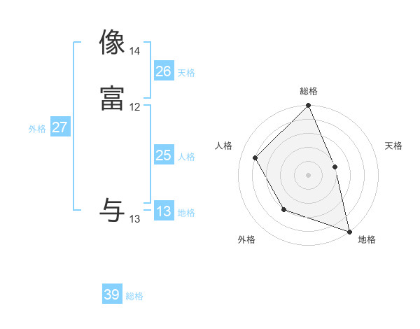 家系が持つ宿命的な運勢を表します。祖先から受け継いだ苗字ですので自分の力が及びません。家柄を象徴します。