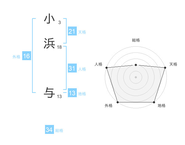 小浜 与さんの総格は34画の2点!