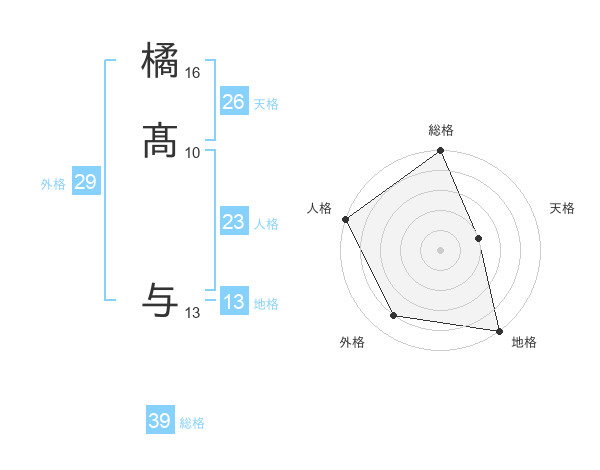 橘髙 与さんの総格は39画の5点!