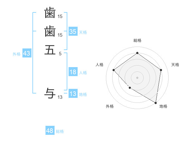 歯歯五 与さんの総格は48画の4点!