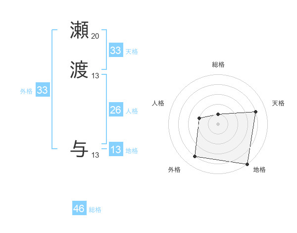 瀬渡 与さんを姓名の画数から五運を鑑定