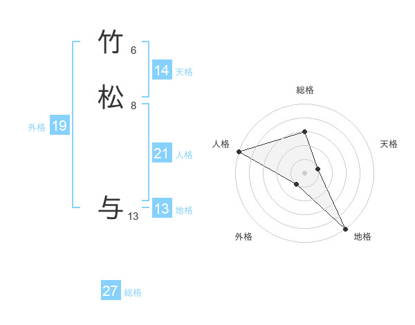 竹松 与さんの地格は13画の5点!