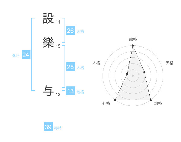 設樂 与さんの総格は39画の5点!