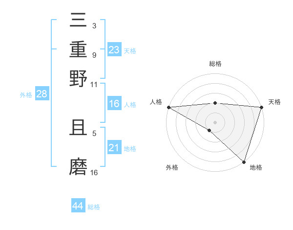 三重野 且磨さんを姓名の画数から五運を鑑定