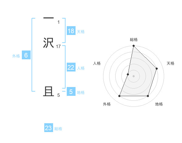一沢 且さんの総格は23画の5点!