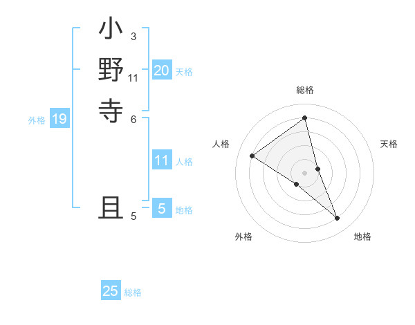 小野寺 且さんの総格は25画の4点!