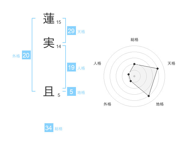 蓮実 且さんの地格は5画の4点!