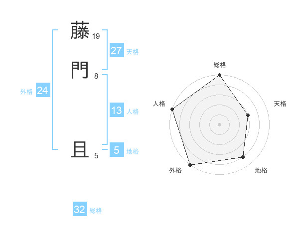 藤門 且さんの総格は32画の5点!