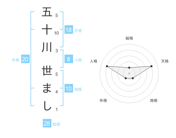 五十川 世ましさんを姓名の画数から五運を鑑定