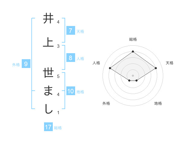 井上 世ましさんの総格は17画の4点!