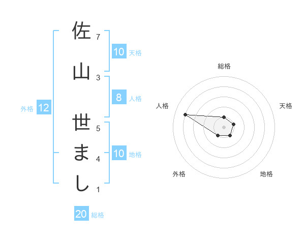 佐山 世ましさんを姓名の画数から五運を鑑定