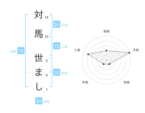 対馬 世ましさんを姓名の画数から五運を鑑定