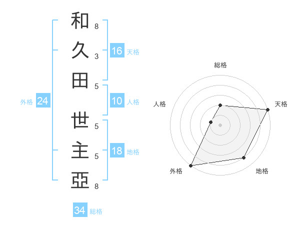 和久田 世主亞さんを姓名の画数から五運を鑑定