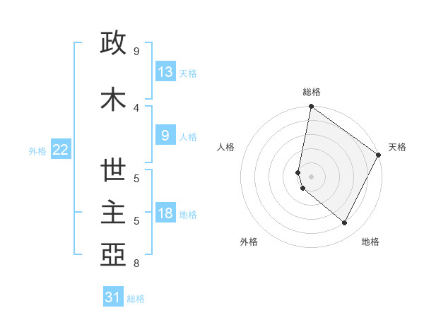 政木 世主亞さんの総格は31画の5点!