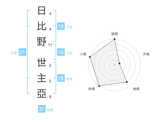日比野 世主亞さんを姓名の画数から五運を鑑定