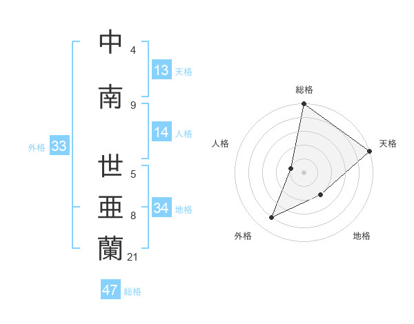 中南 世亜蘭さんを姓名の画数から五運を鑑定