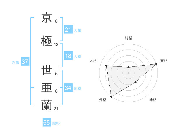京極 世亜蘭さんを姓名の画数から五運を鑑定