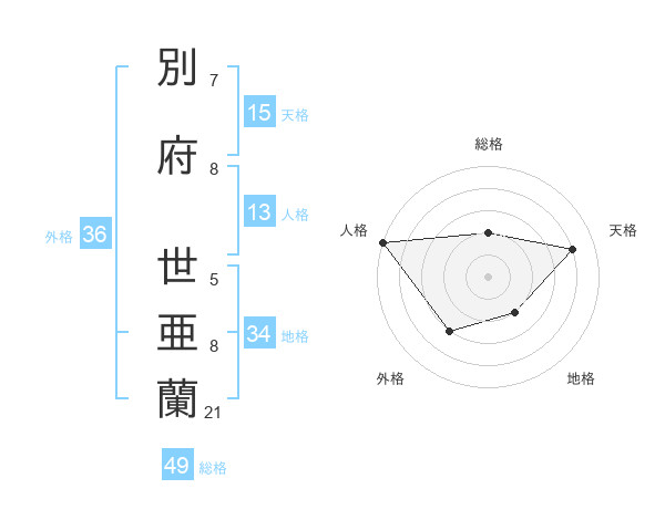 別府 世亜蘭さんを姓名の画数から五運を鑑定