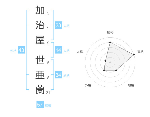 加治屋 世亜蘭さんを姓名の画数から五運を鑑定