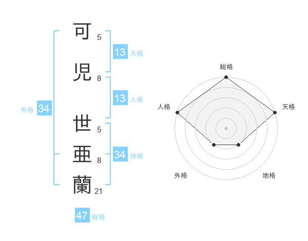 可児 世亜蘭さんの総格は47画の5点!