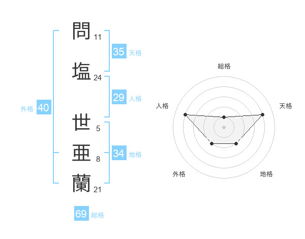 問塩 世亜蘭さんを姓名の画数から五運を鑑定