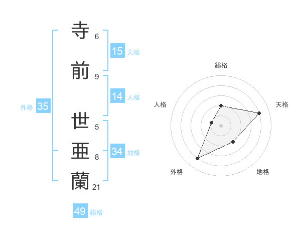 寺前 世亜蘭さんを姓名の画数から五運を鑑定