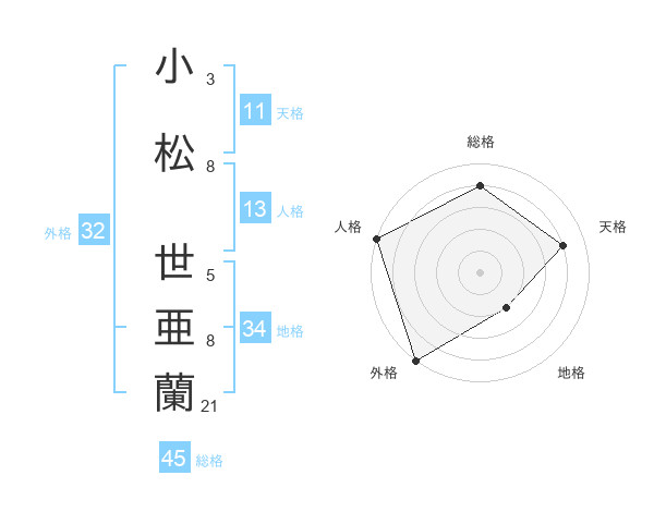 小松 世亜蘭さんを姓名の画数から五運を鑑定