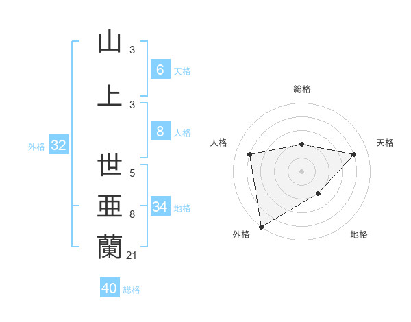 山上 世亜蘭さんを姓名の画数から五運を鑑定