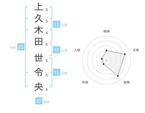 上久木田 世令央さんを姓名の画数から五運を鑑定